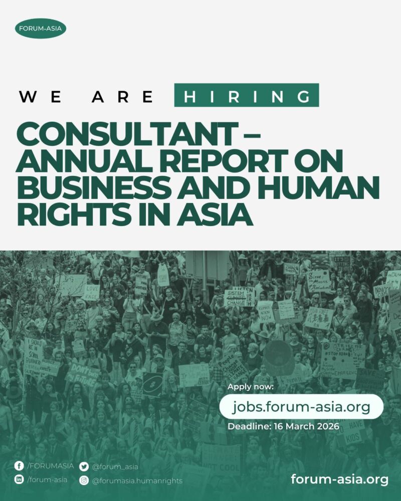 📢 FORUM-ASIA is hiring a Consultant to produce the 2nd edition of our Annual Report on Business and Human Rights in Asia. Lead research, analyze regional trends, and draft the full report.