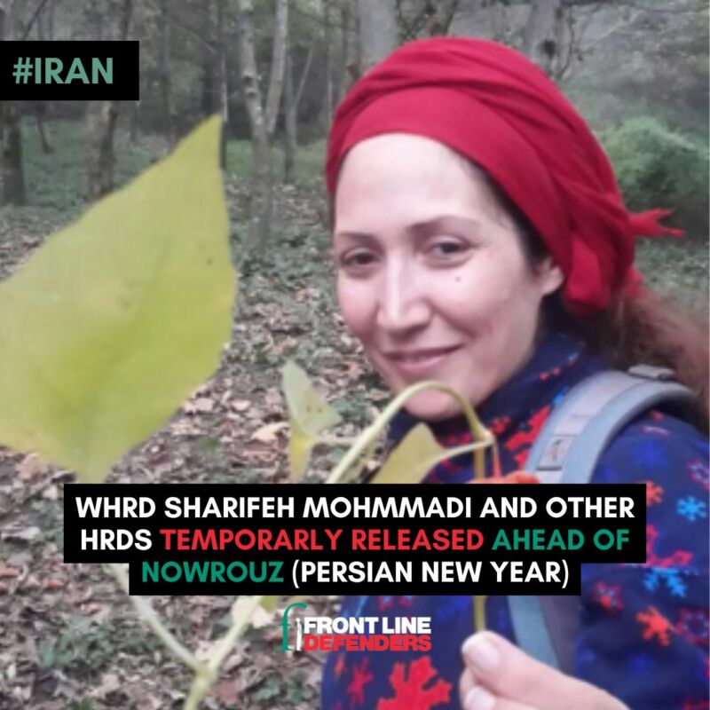 FLD welcomes the temporary release of HRD Sharifeh Mohmmadi and other HRDs ahead of Nowrouz, the new year celebrated by Iranians and many others in the region. We further call upon Iranian authorities to release all other detained HRDs for exercising their work.