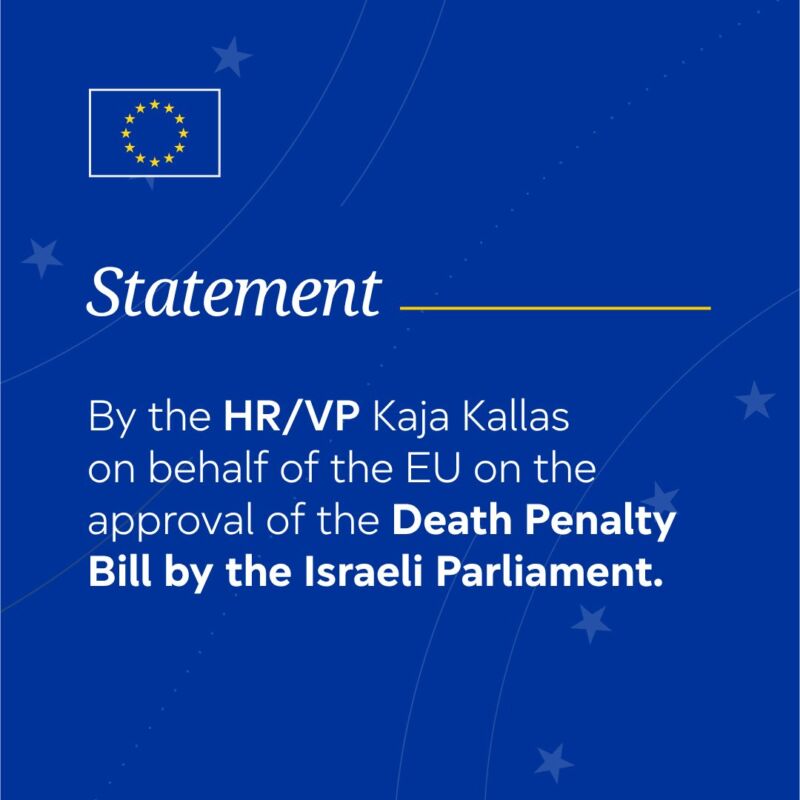 The approval of the Death Penalty Bill by the Israeli Parliament marks a grave regression and we are deeply concerned about its de facto discriminatory character.